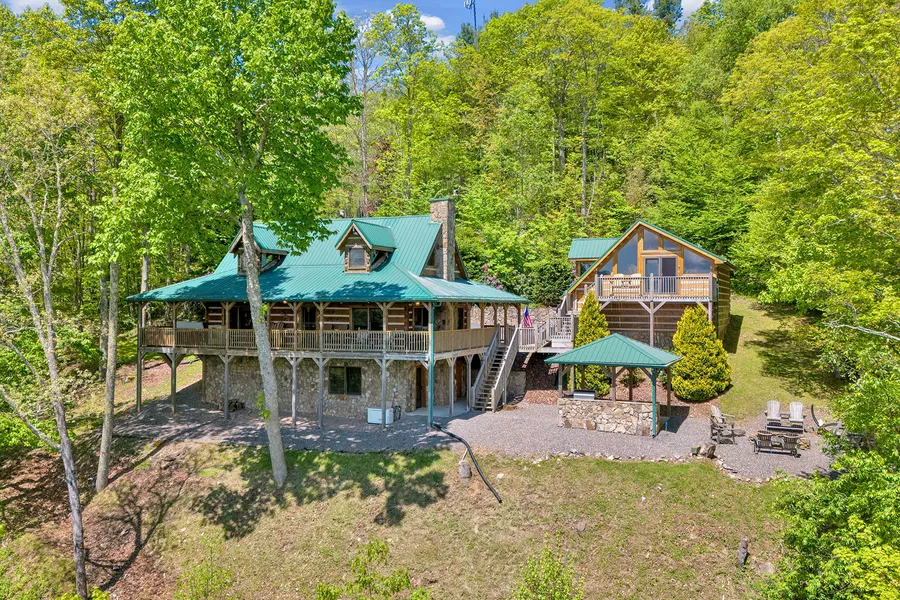Have you been dreaming of the ultimate secluded retreat conveniently located to area attractions? Look no further! Custom log home sits perched at 4,233' elevation w/ million dollar views overlooking the mountains of NC, TN & VA. Spacious great room has a floor-to-ceiling stone fireplace w/ gas logs, kitchen w/ JennAir stainless appliances, granite countertops & custom cabinetry. Primary ensuite is on the main level w/ double vanities. Upstairs, you will find a loft area being used as an office & a large bedroom w/ lots of natural light & another full bath. The lower level is well-equipped for entertaining, w/ a custom bar w/ granite countertops overlooking the amazing view. This area features a custom pool table & another gas fireplace. Off the side, you will find an intimate wine cellar & tasting room w/ beautiful custom cabinetry. Seller is using an additional bonus/sleeping room as a bedroom (room has no windows) on this level. There is also a full bath. This home would make a great primary residence, second home or attractive rental property. Above the two-car garage, you will find a large apartment & guest quarters representing an additional 691 square feet of heated living space currently being used as an AirBnB. It features a king-size bed, sitting area w/ gas fireplace, kitchenette & well-designed full bath. Safety & convenience features include a propane-powered whole-house generator, attractive metal gates for privacy, a water filtration & softening system, a security system w/ exterior cameras & desirable lighting. For outdoor entertaining, enjoy a covered outdoor kitchen featuring a 52" Viking gas grill, sink, refrigerator, fire pit, an 8-person hot tub & 1,490' of covered wrap-around deck to take in the stunning views. The property is conveniently located near the NC High Country but w/much lower taxes. Furnishings & ATV will convey w/ an acceptable offer. Tax records and professional measurements show a discrepancy in square footage.