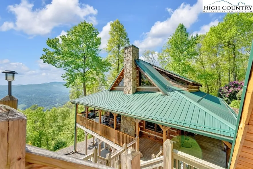 Have you been dreaming of the ultimate secluded retreat conveniently located to area attractions? Look no further! Custom log home sits perched at 4,233' elevation w/ million dollar views overlooking the mountains of NC, TN & VA. Spacious great room has a floor-to-ceiling stone fireplace w/ gas logs, kitchen w/ JennAir stainless appliances, granite countertops & custom cabinetry. Primary ensuite is on the main level w/ double vanities. Upstairs, you will find a loft area being used as an office & a large bedroom w/ lots of natural light & another full bath. The lower level is well-equipped for entertaining, w/ a custom bar w/ granite countertops overlooking the amazing view. This area features a custom pool table & another gas fireplace. Off the side, you will find an intimate wine cellar & tasting room w/ beautiful custom cabinetry. Seller is using an additional bonus/sleeping room as a bedroom (room has no windows) on this level. There is also a full bath. This home would make a great primary residence, second home or attractive rental property. Above the two-car garage, you will find a large apartment & guest quarters representing an additional 691 square feet of heated living space currently being used as an AirBnB. It features a king-size bed, sitting area w/ gas fireplace, kitchenette & well-designed full bath. Safety & convenience features include a propane-powered whole-house generator, attractive metal gates for privacy, a water filtration & softening system, a security system w/ exterior cameras & desirable lighting. For outdoor entertaining, enjoy a covered outdoor kitchen featuring a 52" Viking gas grill, sink, refrigerator, fire pit, an 8-person hot tub & 1,490' of covered wrap-around deck to take in the stunning views. The property is conveniently located near the NC High Country but w/much lower taxes. Furnishings & ATV will convey w/ an acceptable offer. Tax records and professional measurements show a discrepancy in square footage.