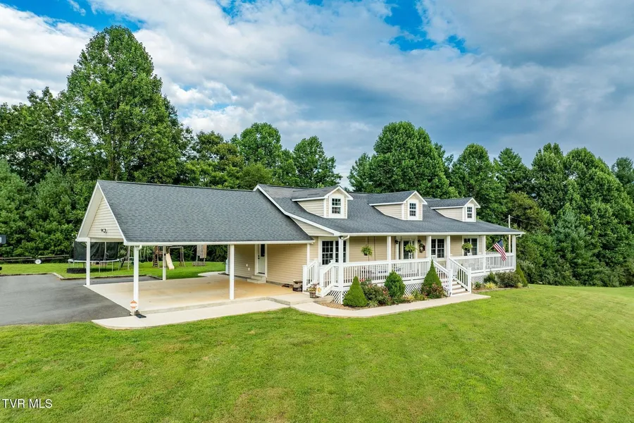 BEAUTIFUL EAST TENNESSEE HOME on 4 ACRES WITH DISTANT MOUNTAIN VIEWS!! Tucked away in the rolling hills of East Tennessee, this inviting 3-bedroom, 2-bath home offers the perfect blend of comfort, charm, and functionality - all on just 4 acres of land. With NO RESTRICTIONS, you'll enjoy the freedom to make the property truly your own. Outdoor living is a highlight of this property. A covered front porch provides the perfect place to enjoy your morning coffee, while the expansive back deck is made for entertaining with its pergola, hot tub, and peaceful nature sounds. Whether you're hosting a barbecue, stargazing, or soaking in the hot tub after a long day, this outdoor space is designed for enjoyment. It also includes a large attached carport and additional parking space. Step inside and you'll immediately notice the open floor plan, designed to maximize both space and natural light. The living room includes beautiful hardwood flooring and a gas log fireplace - the perfect spot to gather on cool mountain evenings. The kitchen is a chef's delight, featuring rich dark wood cabinetry, stainless steel appliances, and an island with bar seating that opens to the dining area, making entertaining effortless. The thoughtful floor plan separates the living spaces, with two bedrooms and a full bath on one side of the home, while the master suite rests on the opposite side for added privacy. The master bedroom is spacious and serene, enhanced by a beautifully remodeled en-suite bath. Pamper yourself in the spa-like setting with a custom tiled shower, a double sink vanity, and a luxurious jetted tub that invites relaxation. There is a generously sized laundry room that makes daily chores more convenient. Downstairs, the unfinished basement with a garage door offers endless possibilities. Whether you're envisioning a workshop, hobby space, extra storage, or future finished rooms, the space is ready to meet your needs. Located just a short drive from the sparkling waters of Watauga Lake and the charming mountain town of Boone, NC, this property provides the best of both worlds - a peaceful retreat with quick access to outdoor adventures, shopping, dining, and more. Don't miss this chance to own this East Tennessee gem - a property that combines modern comforts, rustic beauty, and room to grow! The septic system is a 2-bedroom septic. The seller has never had any issues with the septic system. Buyer/buyer's agent to verify all info.