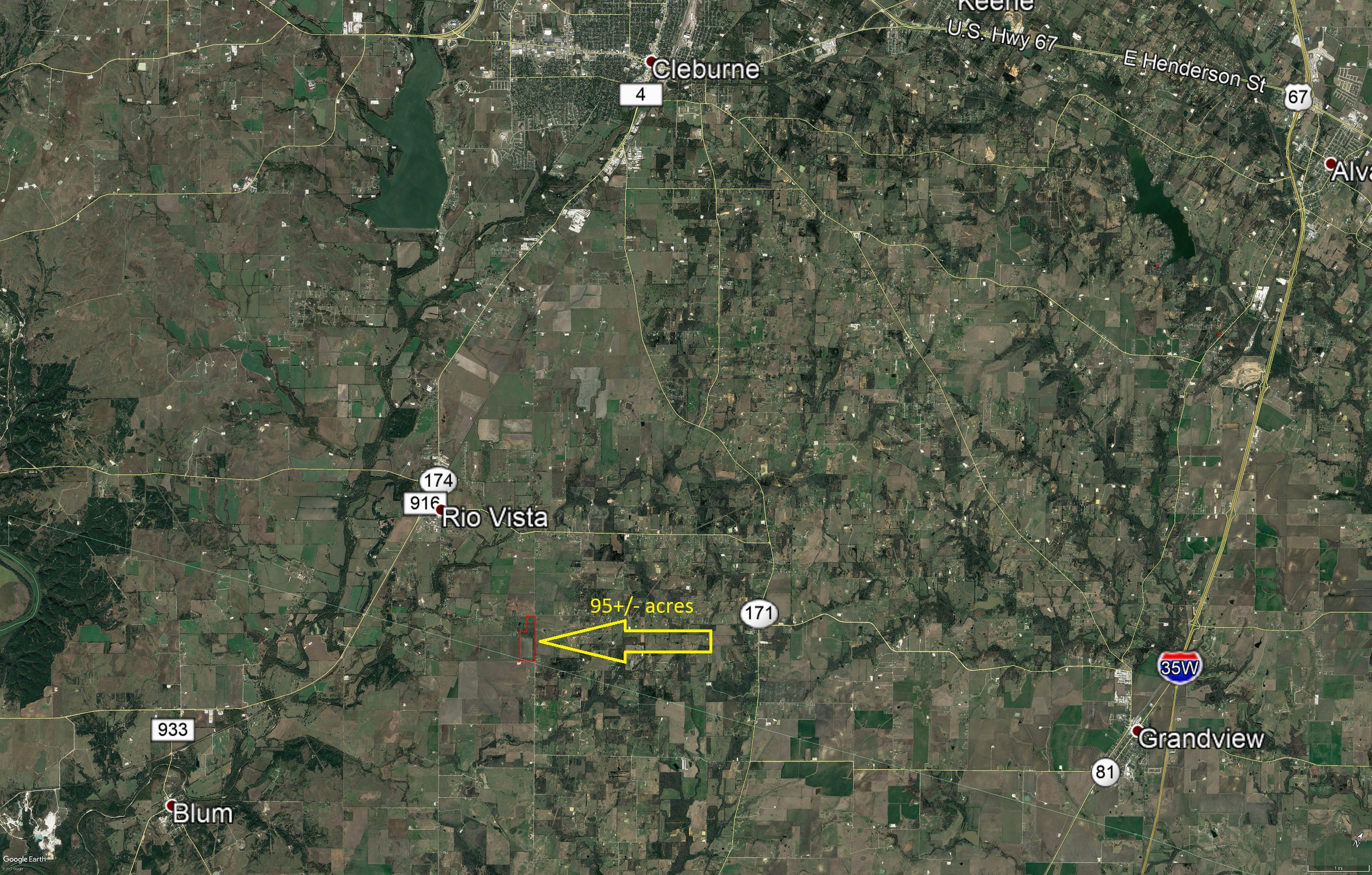 Research Parcel InformationFrom Cleburne: South Hwy 174 to FM 916; East on FM 916 to CR 1205; South on CR 1205 to CR 1102; Property begins at southwest corner of CR 1102 & CR 1205 and continues south on CR 1205 appx 4000ft.