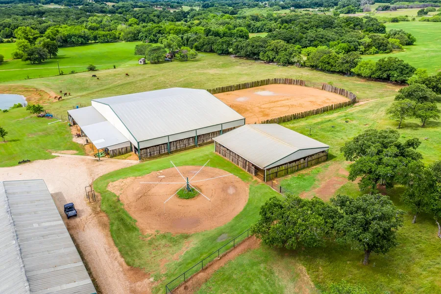 Incredible opportunity to own a horse training facility with a main home, 13 stall main barn, combination covered and open arena, six horse walker, 60 x 60 foot square barn currently used for round and square hay bale storage, older barn converted to a workshop and storage area with 5 shed row stalls, covered parking for a big rig, shavings bin, pond stocked with fish, pasture for the horses, six rental units and home for the hired help. The main house has about 3000 square feet with three bedrooms and two baths. Gated entrance to the horse facilities. All this and much more on about 15 acres. Sandy loam soil and scattered trees. 30 Minutes to Will Rogers Center in Fort Worth.