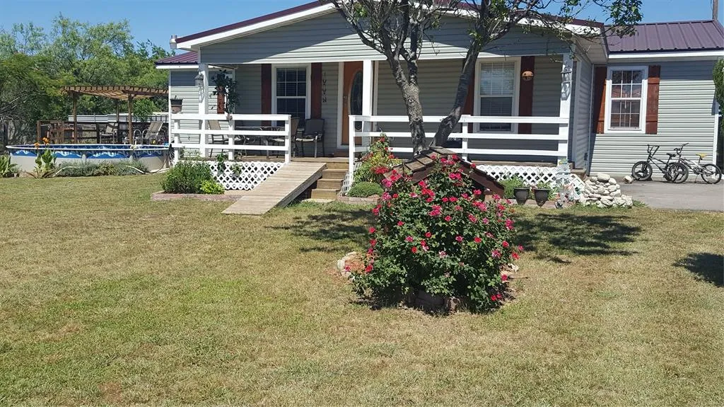 Situated on an acre this home offers space, large trees & beautiful views. Perfect location close to schools, shopping & Chisholm Trail. Both front and back patio are covered. Backyard boast a 39 ft covered deck patio. Above ground vinyl pool with sunning deck and pergola are great for Texas summers. Pick fresh figs, peaches and pears from the fruit trees! This is casual country living at its finest.