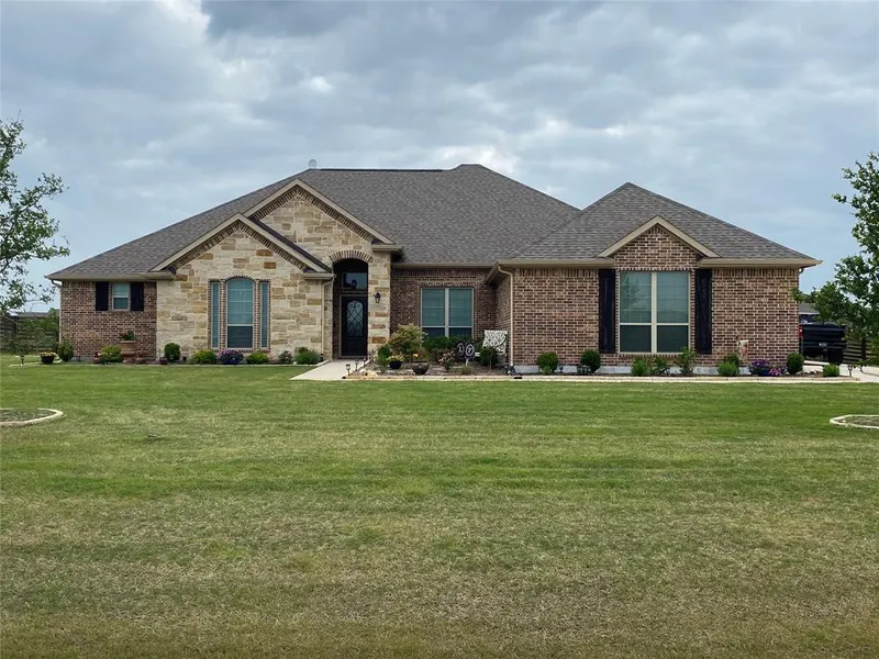 Welcome to a slice of Paradise in the country! Spacious Texas Traditional located on 1.006 fenced acres. Upon arrival you are greeting with a large front yard, at entry you will find a solid oak door with wrought iron and glass accents that open up to the entry with 12ft ceilings. The living room boasts 12' ceilings with recessed lighting, wood beams, floors and wood burning fireplace. The living, dining and kitchen are open concept and great for entertaining. Granite countertops throughout, 12x12 tile in all baths, kitchen, dining mudroom and laundry areas, carpet in all bedrooms except 5th BR which has wood floors to match entry and living room. Large covered patio overlooks 18'x36' pool with Baja deck.