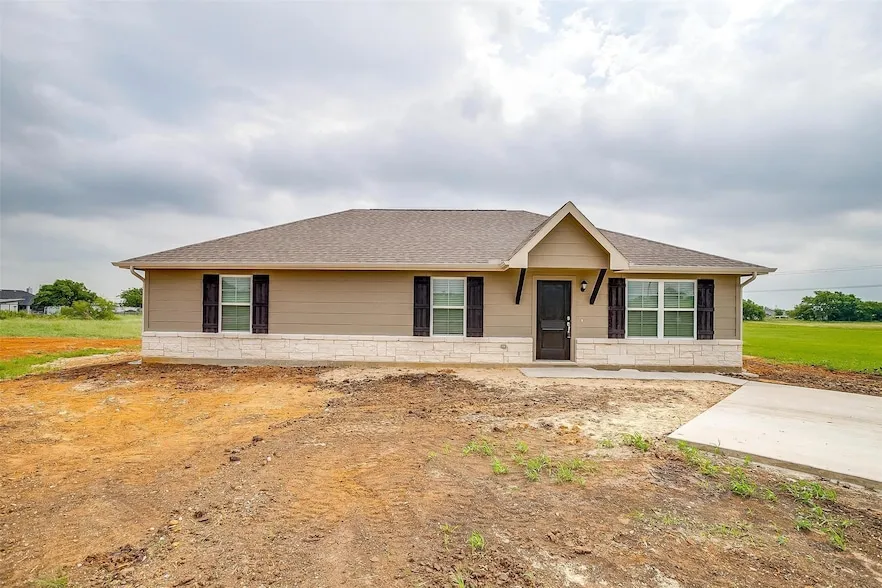 Huge incentives just announced! Brand-new home ready to move in! 3 bedroom house with open concept plan. Big living room that is open to the kitchen and dining room. The kitchen features pretty white cabinets with a contrasting color on the island, granite countertops, tile backsplash, stainless appliance package with a laundry room off the kitchen. The primary suite features a big bedroom with ensuite bath which includes split vanities, oversized shower with tile and recessed floor, and has a huge closet. Floors are stained concrete in the common areas with tile in the baths and carpet in the bedrooms. Traditional elevation package features stone wainscot on the front with lap siding and cedar shutters, along with gutters. This one is built on 1.39 acres. Qualifies for all types of financing including Conventional, FHA, VA, USDA. Builder incentives include Title Policy and Survey paid by the builder, plus $5,000 in concessions to the buyer. If Builder's preferred lender is used, an additional $5,000 is available! Applies to contracts written before August 10th.