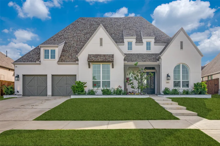 Stunning and energy-efficient single-story Highland Home on a generous 70' lot with greenbelt views, top-tier upgrades, refined style, and exceptional family functionality. This impressive home features 4 bedrooms, 4.5 bathrooms, a dedicated theater room, a private office, and a 3-car garage. Open-concept layout seamlessly connects the extended family, dining, and breakfast areas. Each bedroom includes a full bath. Home theater pre-wired surround sound. Private office. Glass sliding glass doors lead to an extended patio, pre-wired for TV, speakers, and security. Gas hookup for an outdoor kitchen. Luxury upgrades abound, including elegant engineered Kentwood hardwood floors (6.5" brushed Maple in "Tan Leather") throughout. A contemporary gas fireplace, ceiling fans in every room, and custom plantation shutters add sophisticated touches. The chef's kitchen is a culinary delight, featuring upgraded cabinetry with glass doors, quartz countertops, double ovens with air fryers, a pot filler, undercabinet lighting, and hidden outlets. A stylish built-in bar hutch offers upgraded cabinetry with glass doors, quartz countertops, and a wine fridge. The primary suite is a true retreat with a spa-style bath with quartz counters, a towel warmer, and dedicated in-cabinet outlets. In-ceiling surround sound in the family room. Upgraded laundry room with utility sink. The garage offers practical upgrades such as an epoxy-coated floor, overhead racks, and an EV charging outlet. Smart home features include a home media junction box, wireless access points, Wi-Fi garage doors, smart thermostats, a video doorbell, an electronic deadbolt, data drops in every bedroom, and LED lighting upgrades throughout. Additional extras include a JellyFish permanent exterior lighting system and professional landscaping with a drip system and retaining beds. Resort-style amenities, including a pool, a splash pad, and a clubhouse opening in July 2025.