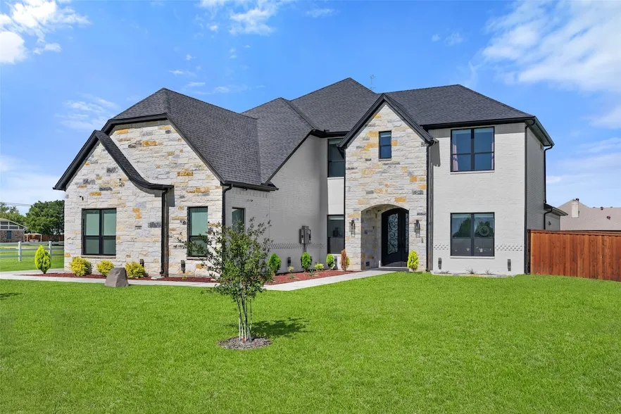 Experience refined luxury in this stunning 5-bed, 5-bath home designed to impress at every turn. Enter through grand iron double doors into a light-filled living room with soaring 20-ft ceilings, a dramatic floor-to-ceiling black tile fireplace, and a show-stopping chandelier. The chef s kitchen is a dream, featuring a 6-burner gas stove, pot filler, walk-in pantry, and butler s area with a secondary sink, ideal for entertaining. The main-level primary suite offers a spa-inspired ensuite bath and a spacious custom closet, while the upstairs includes a second primary suite for added comfort and flexibility. A dedicated office with built-in dry bar and cabinetry provides the perfect workspace. Throughout the home, you'll find designer paneling, custom closets, and generous walk-in storage. Step outside to your private resort-style backyard, complete with a heated pool, jacuzzi, and a conve...
