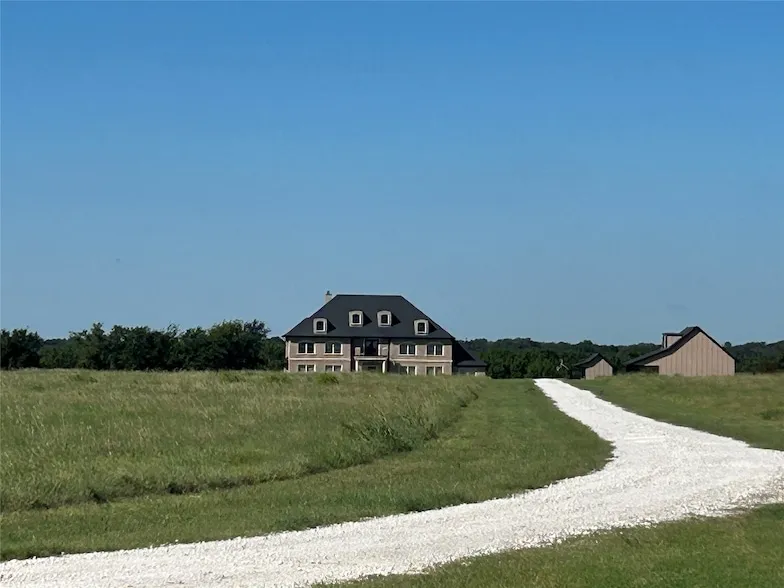Executive home on 20 acres located in Grandview ISD, easy access to the metroplex and airports. Hay is cut for ag exemption back of the property includes an incredible view down to the creek with walking paths and sitting area. Home features a well thought out floor plan, expansive foyer leads to office with built ins and large closet, open kitchen, dining and living area features 21' ceiling, XL utility area with drop zone off garage. Primary bedroom with floor to ceiling windows with a view of back porch and those beautiful TX sunsets. Ensuite bathroom, soaking tub, and large walk thru shower with shower heads at each end, double sinks on large vanity and walk in closet with center island drawers. Upstairs could be used for multigenerational living, 2 bedrooms with ensuite baths, 3rd bedroom and hall bath and don't forget the media living room! Hall closet downstairs is safe room...