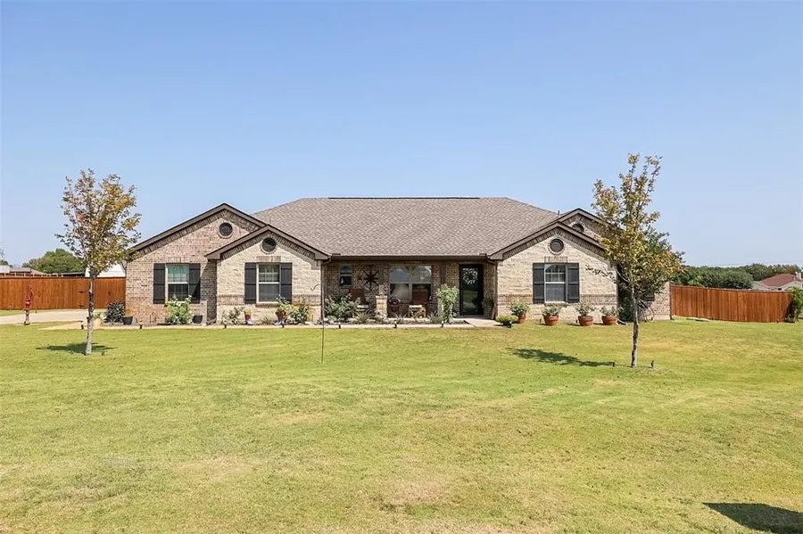 Discover this Exquisite 4-Bedroom, 3-Bathroom Haven on a Sprawling 1-Acre Lot. The Spacious Open-Concept Interior Features Elegant Laminate Flooring and a Cozy Stone Wood-Burning Fireplace in the Inviting Living Area. The Modern Kitchen Boasts an Island, Ample Cabinet Storage, Granite Countertops, and a Charming Breakfast Nook Overlooking the Expansive Backyard. Large Primary Suite Offers a Serene Retreat with a Luxurious En-Suite Bathroom Featuring Dual Vanities, Garden Tub, Separate Shower, and Walk-In Closet. Enjoy a Split Bedroom Floor Plan with Generously Sized Guest Bedrooms and Two Full Bathrooms. Outside, a Vast Backyard, and Covered Back Porch Await. New Roof (Spring 2025). Conveniently Located 3 Minutes From I-35W. Come See This One Today!