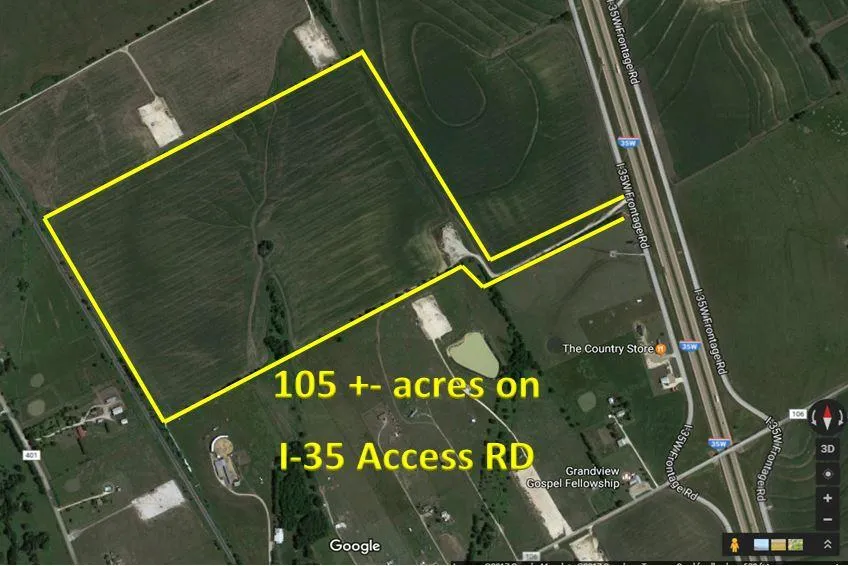 $5,700 an Acre For +-105 acres with Excellent Location between Alvarado and Grandview with I-35 access Road Frontage, Easy Access!!. Not in City Limits. No Restrictions. Owner Financing and Bank Financing Available Ask me. No Farming Lease in place. Perfect For Residential Lots, Commercial, Farming or Industrial opportunities. Grandview ISD schools No City Taxes. Very Close to DFW. Wildlife Abundant. Property sits on West side of HWY I-35 along access road. Near the Country Store. 10536 I-35W Frontage RD Grandview, TX 76050 18 miles from Fort Worth, 30 miles from Dallas, 5 miles from Alvarado, 4 miles from Grandview, 12 miles from Cleburne, 14 miles from Burleson, 18 miles from Midlothian.