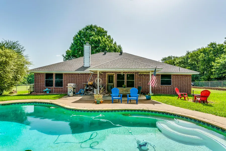 Great little horse property perfect for trainer or weekend warrior. Set on 8 acres just outside of Grandview. Approximately 2,853 sq. ft. brick home with 4 bedrooms and 2 full baths, also an additional shower in laundry room. Concrete floors great for active ranch lifestyle. Beautiful inground pool with 10 feet deep end and full concrete surround. Lush grass pastures, horse turnouts with loafing sheds in every turnout and pasture. Full size roping arena with chute, boxes and return alley, also holding pens. Large horse barn with 6-12 foot by 12 foot stalls and 9-12 foot by 20 foot covered runs. Barn also has full size tack room, washrack, saddling area, hay storage and trailer parking. Great pipe entrance and frontage, entire property fenced and cross fenced. Scattered trees throughout the property and wonderful views.