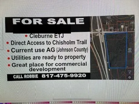 Great opportunity to own this road frontage property with direct access to the Chisholm Trail Parkway. Only hard corner left on the CT toll road. High visibility. 1800' of frontage road on CT tollway. 800' of frontage road on CR 904. Great place for a commercial development. Utilities are ready at property. Current AG use (Johnson Co). Willing to subdivide.