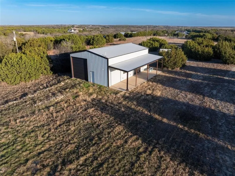 This shop is truly a must see! Situated on a perfect corner lot, this fully fenced 5.01 acre property offers a large flat area ideal for building your dream home. With dual street access, you have flexibility and convenience. The shop is approximately 30 ft by 50 ft, about 1500 square feet, plus a 12 ft front porch. It has true drive through access with multiple overhead or dock style doors on both sides, including window panels for natural light and visibility. The possibilities are endless! Great setup for storage, equipment, projects, or a workshop. Schedule a tour to see the shop and property layout in person.