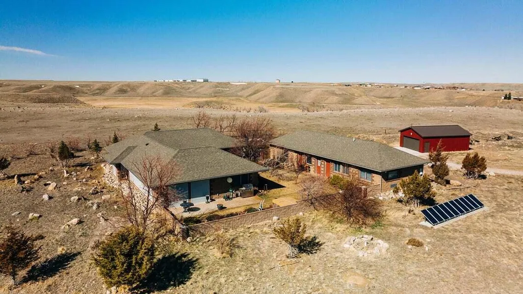 Set against the backdrops of open Wyoming skies and rolling hills, the property combines both country charm and the convenience of being minutes from downtown Buffalo. Given the privacy offered by the placement of the main home, guest home and rustic cabin on 28 acres, it is a surprising quiet escape. Brick and stone on the exterior of the main ranch style home, guest home and fencing combine to create a private courtyard oasis with endless Bighorn Mountain views. The 2146 sf main home, which features an airy floorplan with timeless interior style, granite countertops, concrete flooring throughout, three glass doors for easy access to the outdoors, a large primary bedroom & bathroom on the North end, a bedroom/office & bathroom on the South end and an oversized two car garage. Set against the backdrops of open Wyoming skies and rolling hills, the property combines both country charm and ...