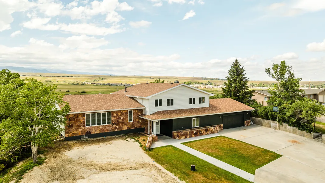 Beautiful home located in a great area on the edge of Buffalo with mountain views. Situated on almost an acre of land, this home has been completely updated inside with new exterior paint also. 3 bedrooms, (1 is a large master bedroom and master bath suite with gorgeous views), 3 baths, formal dining room, large living room, plus a separate eating area in the kitchen w/ new appliances. Sliding glass doors off of the kitchen to a large deck for your summer entertainment and dining needs. New flooring also.
