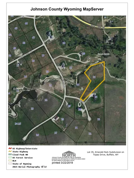 Here is your opportunity for country living just right outside of town! One of the finest developments in the Buffalo area. Lot sizes ranging form 2.7 acres up to over 7 acres. This area is horse friendly (see covenants). Some of the amenities include natural gas, paved roads and great views. There is abundant wildlife, ponds and beautiful sunrises and sunsets that you can see for miles! Come build your dream home here today! Buyer is required to pay a $300 fee to have engineered approved plans. All measurements are approximate.