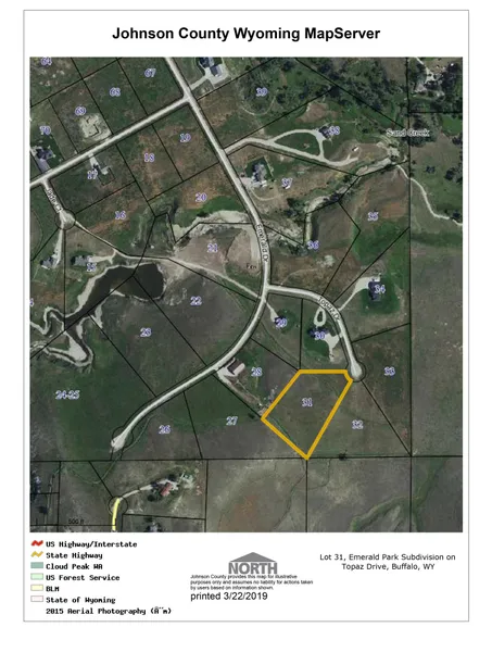 Here is your opportunity for country living just right outside of town! One of the finest developments in the Buffalo area. Lot sizes ranging form 2.7 acres up to over 7 acres. This area is horse friendly (see covenants). Some of the amenities include natural gas, paved roads and great views. There is abundant wildlife, ponds and beautiful sunrises and sunsets that you can see for miles! Come build your dream home here today! All measurements are approximate.