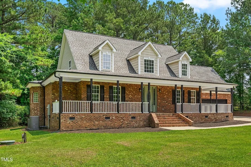 3149 Sq Ft all brick home with 3 bedrooms, 3 full bathrooms, additional office with a closet, large bonus room on 1.31 acres with NO HOA! Fully renovated home includes new: 2 HVAC systems, hot water heater, appliances, LVP flooring, carpet, tile, toilets, fixtures, countertops, paint, fireplace, garage door, vapor barrier, insulation under home and more. Walk into the large foyer area with custom front door, cathedral ceilings and open stair case. Living room includes cathedral ceilings, fireplace anchored by custom bookcases and cabinets, open second floor walkway, and double french doors to the back porch. Kitchen includes all new appliances, granite, tile backsplash, tons of custom cabinets, and counter high peninsula overlooking breakfast dining area. Primary suite has tray ceilings, double french doors to deck, double french doors to luxury bathroom, and walk-in closet. Primary bathroom has been completely updated with new countertops, custom tile, custom glass shower door, dual head shower, dual vanity, and jet tub. Downstairs has bedroom and full bath with new custom vanity and counter top. Second floor has large bedroom, full bathroom, and additional room with a closet for multi-use function. Separate staircase leads to private bonus room over the garage. Large private 1.3 acre lot includes tons of additional concrete and gravel parking for all your needs. Home is located minutes to downtown Clayton and Riverwood Shopping District. Easy access to 70 Business, Hwy 40, Hwy 64 and 540. 25 minutes to downtown Raleigh! Dont' miss out on this fully renovated home with no HOA!