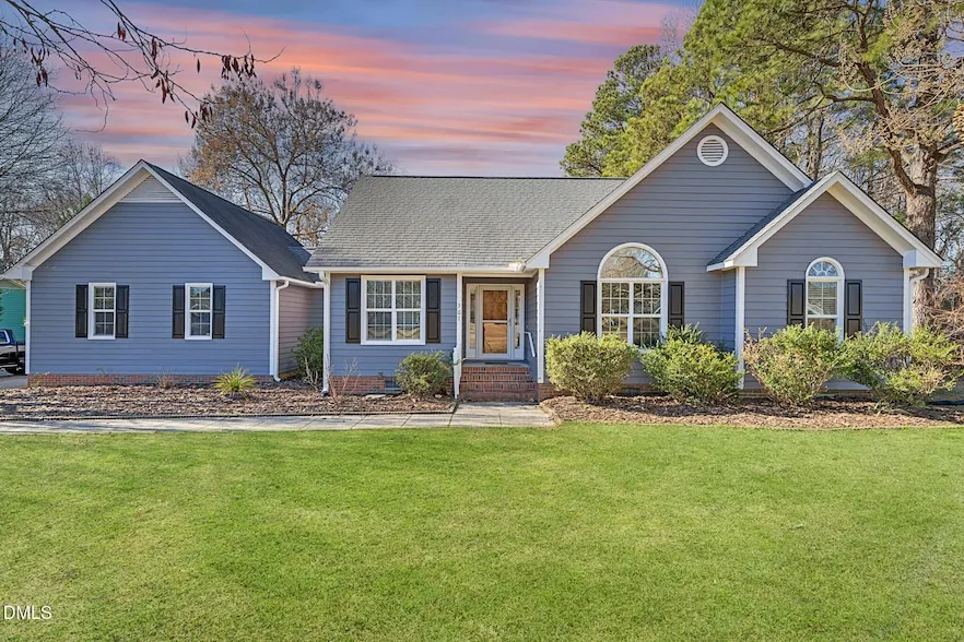 Cute as a button and full of possibilities! This well-maintained 3-bed, lives like a 4 bed 3 FULL bath ranch is tucked into a small, quiet neighborhood, offering both privacy and freedom. Inside, the home features a spacious family room with beautiful LVP flooring and cozy gas log fireplace, flowing seamlessly into the dining area creating an inviting space for everyday living and entertaining. The eat-in kitchen offers resurfaced cabinets and a large breakfast area, while newer carpet and fresh paint add to the home's move-in-ready appeal. The attached garage has been thoughtfully finished by the owner, creating two additional rooms, a full bathroom, and a dedicated storage space adding an additional 576 sf ideal for a home office, guest suite, playroom, hobby space, or multigenerational living. Outside, enjoy the large wooded lot with a deck and multiple outbuildings, perfect for storage, workshops, or outdoor hobbies- hard-to-find features at this price point. Conveniently located near shopping and dining with easy access to Hwy 70, I-40, and the 540 corridor, this home offers the perfect balance of small-town living while staying close to Raleigh, RTP, and surrounding areas. A great opportunity for first-time buyers, downsizers, or anyone seeking versatile space with no HOA restrictions.