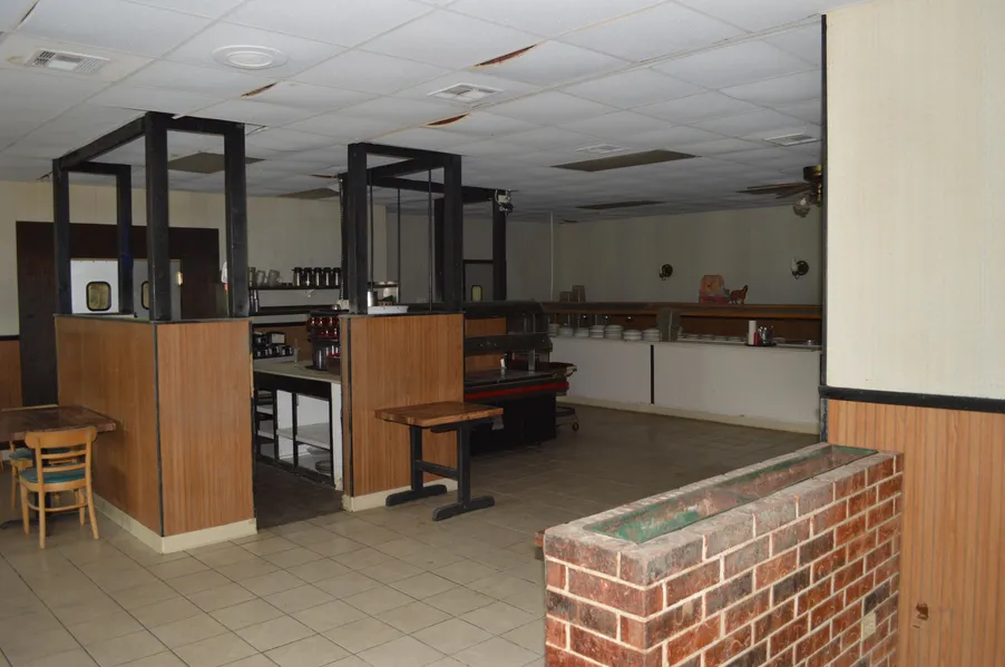 This Commercial building is strategically situated next to the Western Inn Motel and sits on .9+/- acres with ample, well-lit parking. The low-maintenance, 6,022+/- square foot concrete block building offers a 200 seat capacity in current configuration. Front doors open up to lobby with a checkout counter and a 12X12 office. Restaurant consists of two seating areas (front room & banquet room) with restrooms servicing both area. Kitchen is conveniently located to easily serve both the front and banquet seating areas as well as main dining area service station.