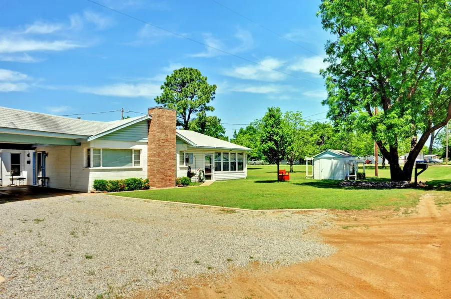 PRICE REDUCED! Great home on 75 acres near Tishomingo Wildlife Refuge and Washita River. Well kept 2 bedroom 1 bath home with 2 living areas - one with pellet stove. Big galley kitchen and large utility room. 2 large shops, hay barn and multiple outbuildings.