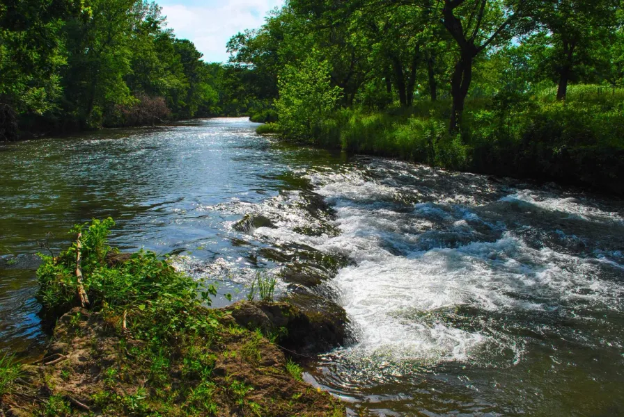 Boasting 1360 feet of Blue River, this property gives you a tremendous amount of river frontage on a relatively small amount of land. This is a truly beautiful stretch of the river where springs from the Arbuckle Simpson aquifer feed directly into the river, maintaining a continuous base flow with constant inputs of pure, cold spring water. With so much of this portion of the Blue River encompassed by large ranches, there are very few chances to own any stretch of it, much less this much of it with just 111 acres. In addition, this portion of the river has beautiful travertine waterfalls. Travertine forms naturally and slowly over time as the flowing water deposits minute amounts of calcium and other minerals in shallow areas, ultimately creating beautiful waterfalls. These waterfalls are constantly reworked as the river dissects and meanders around them creating small chains of travertine islands in the river. These areas create turbulence that in turn oxygenate the water creating a superb fishery for small mouth and black bass. Between the constant flow of highly oxygenated, pure springwater and the natural structure formed by the travertine deposits, these stretches of river are exceptional for floating, swimming and fishing. Flyfishing would be particularly enjoyable in the deeper holes.