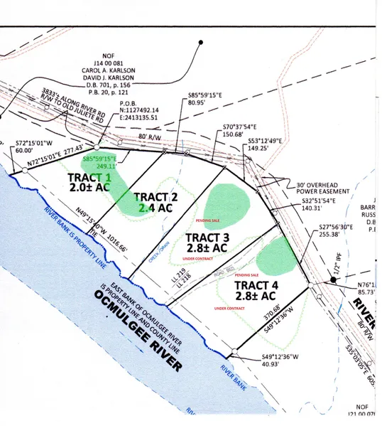The tracts have wooded and open land ,gates installed. All soil tests have been completed, within just a couple of Miles of the national forest also a little over an hour to Atlanta, as well just 20 minuets to all the shopping and entertainment you'd want in Macon GA. And Forsyth Ga.