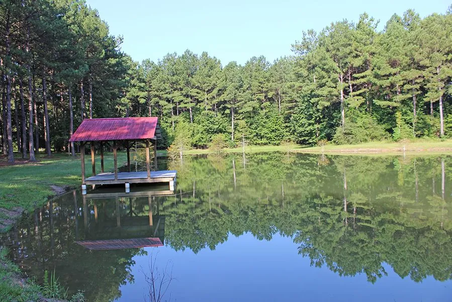 GORGEOUS HOME OR CAMP SITE WITH POND. Secluded, quiet, and peaceful are just a few of the adjectives that describe this listing. These attributes make it a prime spot for a country estate or weekend retreat in South Mississippi. Located three miles east of the Myrick Community in eastern Jones County, the site has one-quarter-mile frontage on Pearman Road. A pipe fence runs the length of the road frontage. Enter the gated entrance and wind your way down the well-maintained gravel road. You will drive past a cleared and landscaped area to the one-acre pond. There, you will find a nice covered deck just waiting for a couple of hammocks and a barbeque grill. Mature pine timber on the property enhances the sites beauty while also providing excellent habitat for the local wildlife.