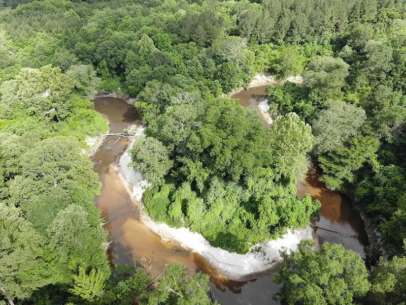 OUTDOOR POSSIBILITIES. A beautiful mix of young and mature pines and hardwoods offer plenty of natural habitat for the local whitetail deer and turkey frequently seen on this site. There are places for possible green patches and/or hunting stands. Tallahoma Creek and a pair of oxbow ponds offer natural watering holes for the wildlife. Additionally, JO50 is located in the Mississippi Migratory Flyway for waterfowl and the oxbow ponds are great spots to set up duck hunting blinds.