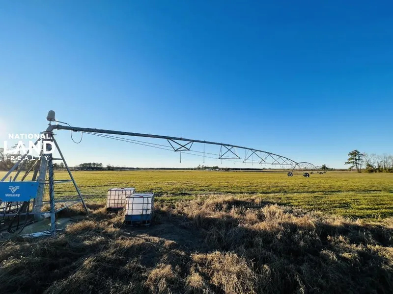 Jones County Pivot Farmland for sale just outside of Trenton NC. This 118 acre farm is set up with 3 irrigation pivots, ponds, and a 4" on site well. The pivots cover 69 acres of the land along with a small section of Conservation easement along a ditchline and 27 acres of natural growth timber. For more information on the pivots/tillable land give us a call. Farm records, FSA maps, and pivot maps are available upon request.