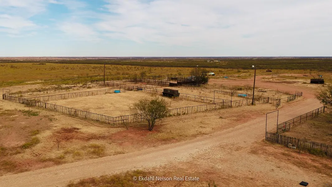 Fantastic set of cattle pens. Excellent potential for cattle production. Open field and native pasture with wildlife hunting, white tail deer, quail, dove, feral hogs. Good house site. Hawley Rural Water possible as well as electricity. 1 stock tank.