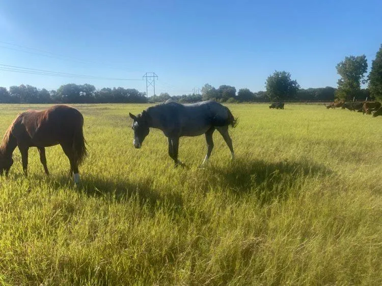 30x35 barn with double doors and cement floor, attached 48x45 horse barn with 8 pipe stalls and runs. Gates configure to make additional temporary holding pens. Several outbuildings. 2 Loafing sheds.