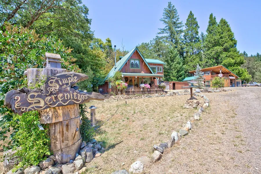 Once or twice a year, in the occasional fairyland snowfall, this home might be mistaken for a Thomas Kincaid painting on a setting that is pure storybook. Views from two living units are breathtaking. Each room is an artful blending of vintage craftsman with tasteful modern. The kitchen was totally redone in 2018 and is major elegance on a minor scale. Walk out the front door to a panorama of 70 acres of adjacent pasture, rimmed by tree covered mountains, surrounded only by the sounds of nature. The fenced garden area includes 18 raised, irrigated beds. The creek runs just past the home and is a picturesque water feature in the spring, though it goes underground in the late summer. Also, there's an outdoor entertainment center with gazebo, BBQ and fire pit. Two shops, one with a hydraulic lift. Good well. Diesel generator.
