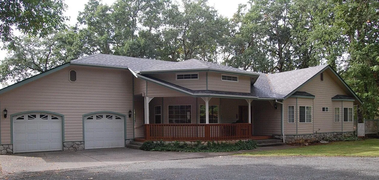 Beautiful 2063sf home in move in condition, located on 2.23 acres with Jump Off Joe Creek running through the back of the property. The home sits back off the road for privacy. The home offers a large living room with a propane fireplace and open to the wonderful kitchen and breakfast nook, kitchen offers a lot of storage and counter space, hardwood flooring in the kitchen, dining area, dining room, and hallway. Huge primary bedroom with bay windows and a great bathroom offering a jetted tub and step in shower, the other 2 bedrooms have bay windows. The backyard is beautifully landscaped, and features a pond w/water feature. The laundry room has a utility sink and a toilet. RV Parking, sprinkler system and plants on drip system. New roof in May 2022, newer HVAC system in 2021