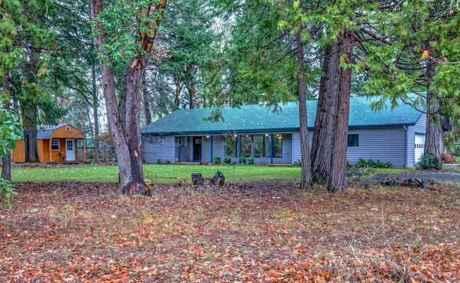 Nice 3 bedroom 2 bath home with attached 2 car garage on 5 level acres. This quiet setting is located in the heart of the Illinois Valley within walking distance of local wineries. The home was remodeled in 2014 that included a new roof, water heater and more. The home is set back from the main road and accessed by a private paved road to your gated driveway. The large picture windows in the living room bring the outdoors in and accentuate that rural country living that is getting harder and harder to find. There is a double sided wood burning fireplace that is open to the living room and kitchen dining area. The patio doors open up to a large deck with Gazebo for outdoor dining, garden area, and the fenced back yard for pets or kids. Beyond that is open space. There is a nice sized shed that looks like a Tiny House that could be used for a variety of hobbies, storage, studio or a 4th be...