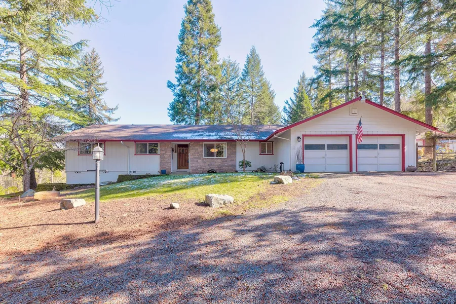 Wonderful Country home! Highly desirable single story, fully fenced acre in Colonial Valley. Nicely updated 3 bedroom, 3 Bathroom home features plank floor, tile, fireplace with wood insert, plus a heated and air-conditioned sunroom with great windows to your private paradise. The attached 2-car garage has a full bathroom. Your new oasis also boasts a detached 480 sq ft garage/shop/carport building that has water, electricity, and a heating & air unit. The grounds include patios, RV parking, gazebo, raised garden beds, luxury chicken coop, fruit trees and 2 additional shed.
