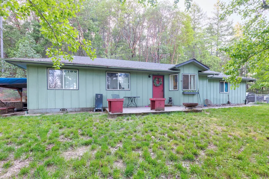 Serenity awaits! Tucked in the trees sits a lovely 1,126sqft home on 2.55 acres with shared private Rogue River access/boat ramp. This cutie is a 3 bedroom 2 bathroom home with a 3 car attached garage/shop area! Open floor plan, spacious kitchen, wood top island, knotty pine cabinets, dining area and large living room with woodstove (currently used as shelving) Bay window/sitting area looking out to front yard. Primary bedroom ensuite with sliding glass door to back yard. Give the covered patio area some TLC and could be an awesome outdoor kitchen! New chain-link fencing around front and side yard. Land is level around home with hills for privacy. 15 minutes to shopping and restaurants!