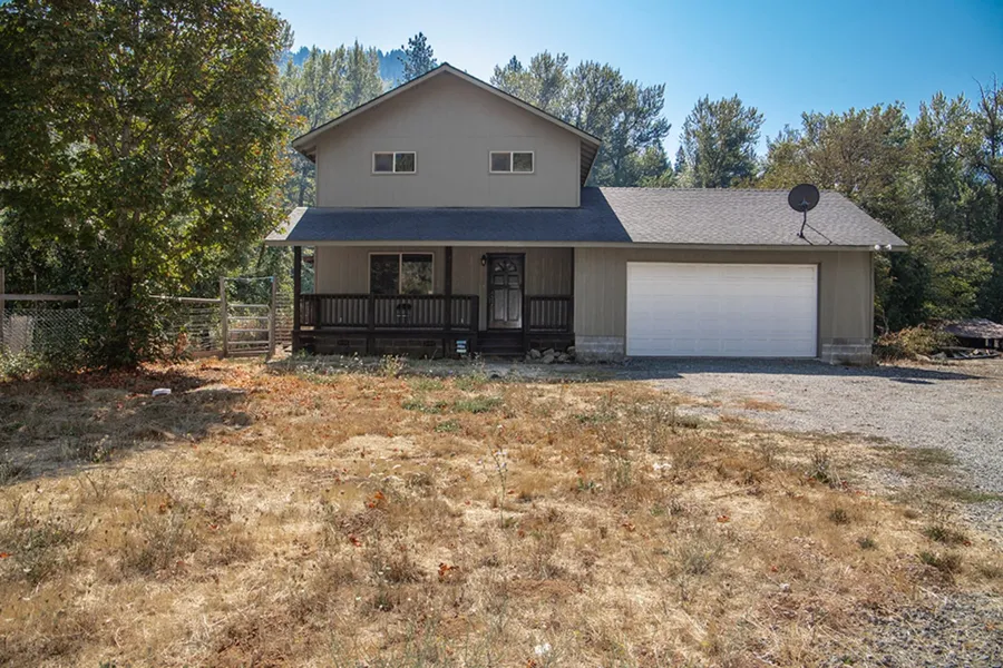 Acreage & Serene Surroundings: Escape to your own piece of paradise! This 3-bedroom, 2-bath home is nestled on a generous 8.49-acre lot. Lower level boasts a large open floor plan with a great room, dining, kitchen with granite countertops and easy glide cabinetry, and a bathroom. Upper level has three bedrooms and a large bath. Hardwood floors and solid wood doors throughout the home. Not far from town and close to I-5 on/off ramps. With water rights, possibilities on your open pasture are endless. Garden, hike your creek, and manage tall timber; a nature lover's dream. Whatever your pleasure, this property has it all. This home is move-in ready, awaiting its new owners to make it their own.