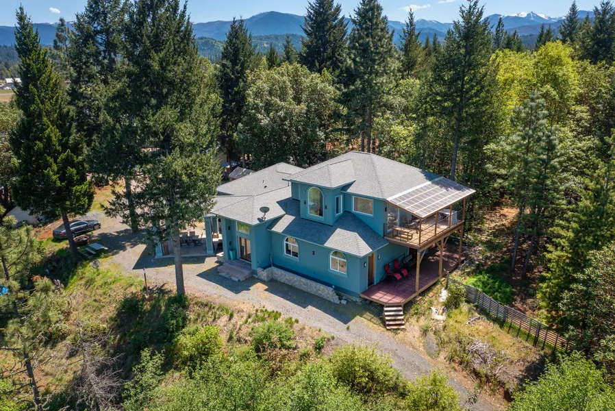 Nestled on a 15.57-acre expanse with panoramic views and bordering BLM land, this property offers versatile zoning options and it's just seconds from Illinois Valley Public Airport and close to recreational wonders like the Oregon Caves, Redwood Forest,, and Oregon coast. Trails for hiking and horseback riding lead to the coast, while the property itself boasts abundant recreational fishing spots. Enveloped by majestic trees and a unique water ecosystem, including Mendenhall Creek, with lots of wildlife, the property promises serene living. A plateau setting ensures privacy, with water and power infrastructure. Fruit trees, berries, & vegetable garden adorn the landscape, and RV hookups. The custom home features a commercial-style kitchen, luxurious master suite with balcony, and elegant finishes throughout. An adjacent 2 story 'castle'' on 50x60 slab with 4 towers, including a shop, co...