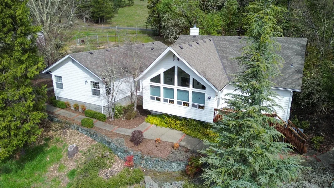 This mid-90's, 3 bed, 2 1/2 bath, gated home nestles into 8+ beautifully maintained acres within walking distance of Fish Hatchery Park. This 2500+ sft. home combines comfortable daily living with open plan entertaining opportunities. Large family room addition features floor to ceiling windows showcasing breathtaking mountain views. Extensive, low-maintenance landscaping has drip irrigation and sprinkler systems. Whole-house, propane-fueled backup generator automatically engages during power outage, ensuring comfort and security year-round. Detached shop building, currently used for woodworking, provides additional garage bay and storage space. Second gate and parking area near shop and raised garden beds is ideal for an RV, boat, trailer, or tractor. Enjoy the best of Southern Oregon minutes from parks, trails, and the Applegate river while enjoying the comforts of a well-equipped and thoughtfully designed property.