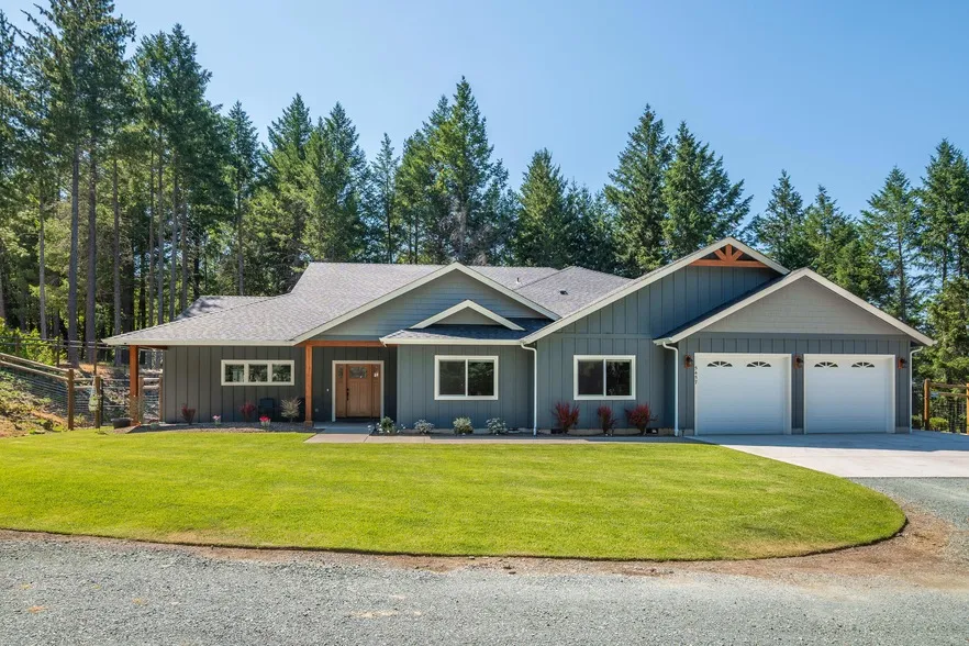 Experience the perfect mix of comfort and versatility in this beautiful single-level home, built in 2023 and set on 7.31 peaceful acres. Designed with flexibility in mind, it features two spacious master suites one with a private entrance and sitting area, ideal for multigenerational living. The main master offers a cozy gas fireplace, a luxurious spa-style bathroom, and a walk-in closet. You'll find 3 more bedrooms, plus an office currently used as a sixth bedroom, 2 full bathrooms, and a bonus room for added living space. The massive great room showcases soaring vaulted ceilings and an effortless flow into the dining area and chef's kitchen complete with granite countertops, a large island with breakfast bar, and stainless steel appliances. Enjoy outdoor living on the gorgeous covered patio, already plumbed for an outdoor kitchen. A detached shop/garage with a studio and bathroom above adds even more flexibility. Don't miss this peaceful property!