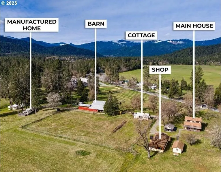 Incredible opportunity to own a unique 82+ acre irrigated farmstead with major development potential! Property includes 3 separate homes: a fully updated 1,700 SQFT 3 bed/2 bath farmhouse, a cozy guest cottage with room to expand, and a refreshed single-wide. Each has its own septic and shares a strong well. All-new underground electrical serves the creek and well pumps, farmhouse, cottage, single-wide, barn, and 1,200 SQFT commercial-grade shop with 3-phase power. Large barn has upgraded 400 AMP service. A year-round creek with water rights adds natural beauty, and a private bridge leads to wooded trails and BLM land- hunt, hike, or explore on your own property! New irrigation supports farming and a newly planted orchard with 900+ apple trees. The residential area is split into 5 legal parcels with potential to divide into 8. Former commercial zoning on shop offers business potential. A...