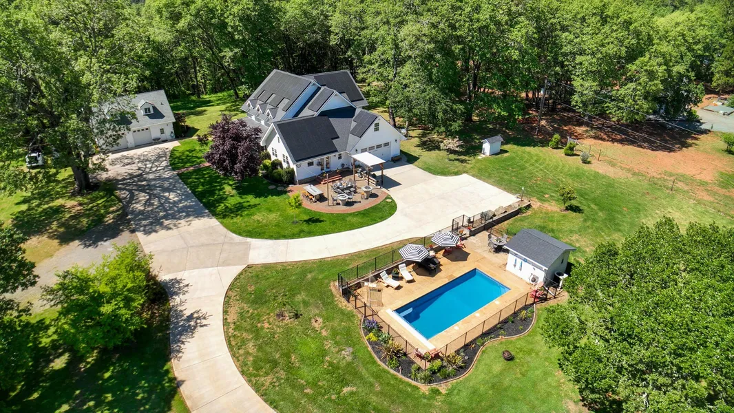 Warm and cozy, in this large 4700+sf home. Main floor has Radiant Floor heating, large primary bedroom with large walk-in shower, a soaking tub and two walk-in closets. Upstairs has its own climate control, 3 bedrooms + office/bedroom, 2 full baths, 2 extra bonus rooms & loft area. Kitchen is large and open with pantry and a walk-down wine cellar. Professionally installed solar panels with 15k battery storage. Outside entertaining is easy with large stamped custom concrete for outdoor cooking entertaining or just relaxing. If getting a little warm outside, dip in the built-in heated saline pool with its own automatic cover to keep it clean and secure. Check out the large, attached garage and the detached garage/shop with its own living space above. Appointment only & pre-qualified buyers.