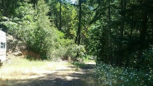 Lots of trees for privacy of homesite. Property has a small cabin but