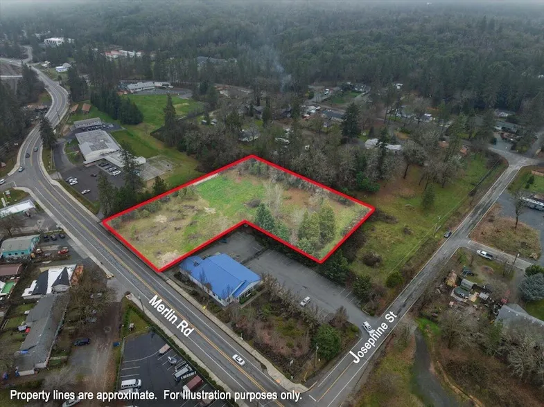 MAJOR PRICE REDUCTION now $198,000 (down $57,000)! Prime commercial property in the heart of Merlin. This 1.54-acre parcel is zoned Community Commercial and previously held County-approved (with conditions) plans for a 24,900 SF, 8-building, 205-unit storage facility. Those approvals expired in July 2025, but all documents and templates needed to re-engage with the County are ready to go, offering a potential head start for buyers wishing to pursue a similar concept. A non-exclusive, perpetual access easement provides connectivity to Merlin Road via the neighboring Merlin Alternative Center. This is a rare opportunity in a growing commercial corridor with flexibility for a wide range of commercial uses. Seller also owns the adjoining 0.34-acre parcel at 171 Almond St (MLS #220194452) and may consider a package deal.