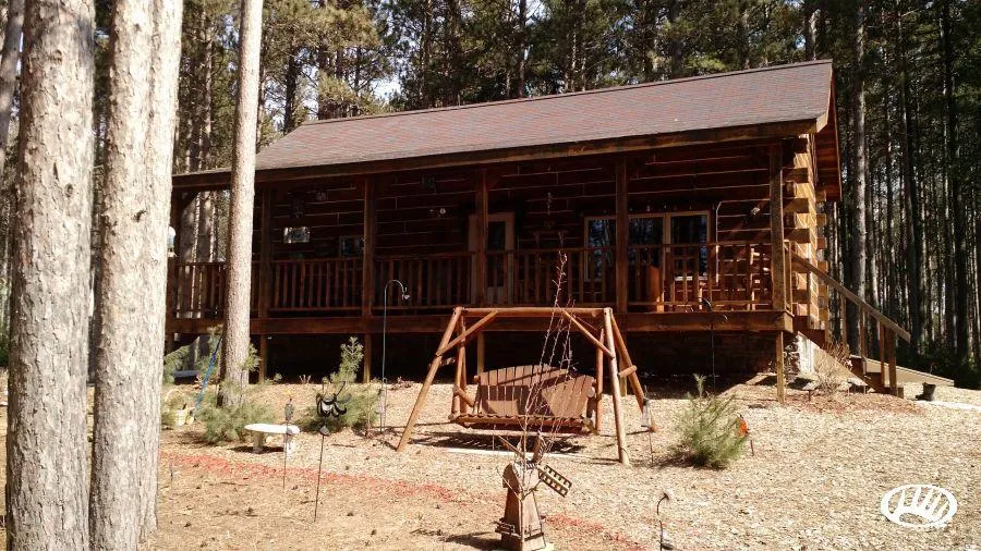 This is an outstanding, complete, turnkey vacation home which includes most furniture and is ready to move into by summer vacation! Featuring lofts on both ends with connecting catwalk this heavy timber designed home features knotty pine interior and full basement, fireplace, full bath, downstairs and upstairs bedroom, office area, full kitchen and cozy dining and living rooms. It is easy to heat and maintain and you’ll love the covered porch which includes all furniture ready for your first cookout with friends and family. The 3-car metal shop and garage also features a covered porch area for grilling and summertime lounging. The end door is even tall enough to accommodate your camper or boat.  Six gorgeous acres of tall red pine provide shade and beauty. The owner has harvested several deer on the property and the adjacent property consisting of hundreds of acres is open for additional...