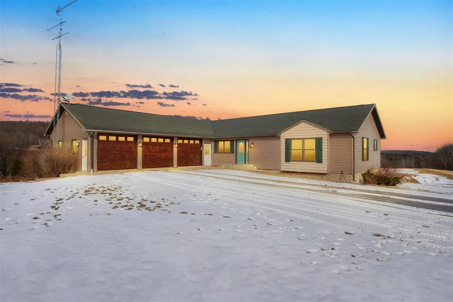 This home has so much to offer! Open concept with views from every direction! Beautiful kitchen cabinets with island. Living area with fireplace. Large master bedroom with walk in closet and bath. Master bath features jetted tub with separate shower. Lower level finished for twice the living space! Unique 3 car garage, lower level shop under garage for all your needs! Extra storage building and chicken coop as well! Geo-thermal Heat! Make your appointment today! Seller selling roughly half of acreage to neighbor. Will remain approximately 6.5 acres, being surveyed now.