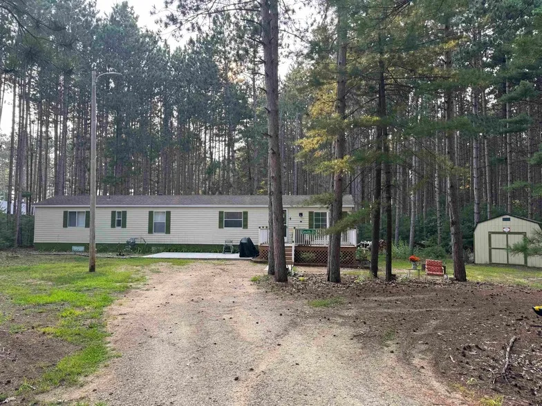 Getaway near Castle Rock Lake! This move-in ready 2-bedroom, 1-bath manufactured home sits on a double lot, bonus buildable wooded lot, offering plenty of space and privacy. Enjoy the up north feel surrounded by mature trees, a large deck for relaxing, and a 12x16 storage shed for all your gear. selling this semi furnished. Step inside to find new flooring, fresh paint, and some kitchen updates. The bathroom updates feature a new shower and vanity. Other updates include a newer hot water heater, AC unit, well pump, roof, and septic system. Additional features: natural gas, water softener, washer and dryer included. Whether you're looking for a weekend retreat or year-round living, this one offers comfort, space, and convenience, just minutes from Castle Rock Lake! Includes both lots