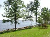 This parcel is wooded with pine, level to the water, offers a professionally rocked shoreline and adjacent crescent shaped sandy beach, and incredible 3 mile long views over the lake.