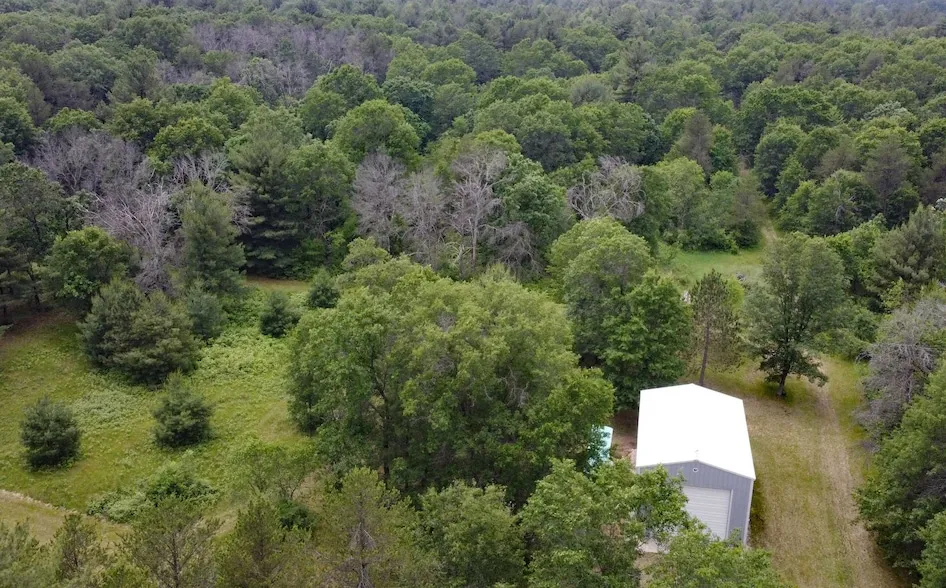 Wooded camping retreat or building site for your dream cabin. Camping, Hunting and VRBO allowed. You can pull your camper in and start enjoying summer vacation. Pending Survey - this property will be approximately 12+/- wooded acres with 24'x36' pole shed. Shed has concrete floor, 100 amp electrical service and 14' overhead door. Castle Rock Lake is across the street and boat slip rentals available at marina less than 1 mile away. Driveway and trail around the lot is cleared. Tax info is for the current 15 acre parcel with house and all buildings so taxes and acreage will be determined after survey is complete. Security cameras on property, don't trespass, schedule showing.