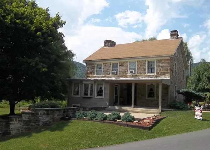 Remodeled 1,800 sq. ft. stone farm house. New oak kitchen with self-closers & stainless steel appliances included. Wood laminate floors. Two fireplaces. radiant floor heat. Oil furnace & Outdoor furnace. Three bedrooms. 28 x 40 x 10 heated garage. 36 x 60 Two story bank barn. 12 x 18 dog kennel. 15 x 18 Stone spring house. Property consists of 6.8 acres, approximately 3 acres wooded. Small stream trickles through the back yard. This immaculate farmette is complete with mature trees & shrubbery.